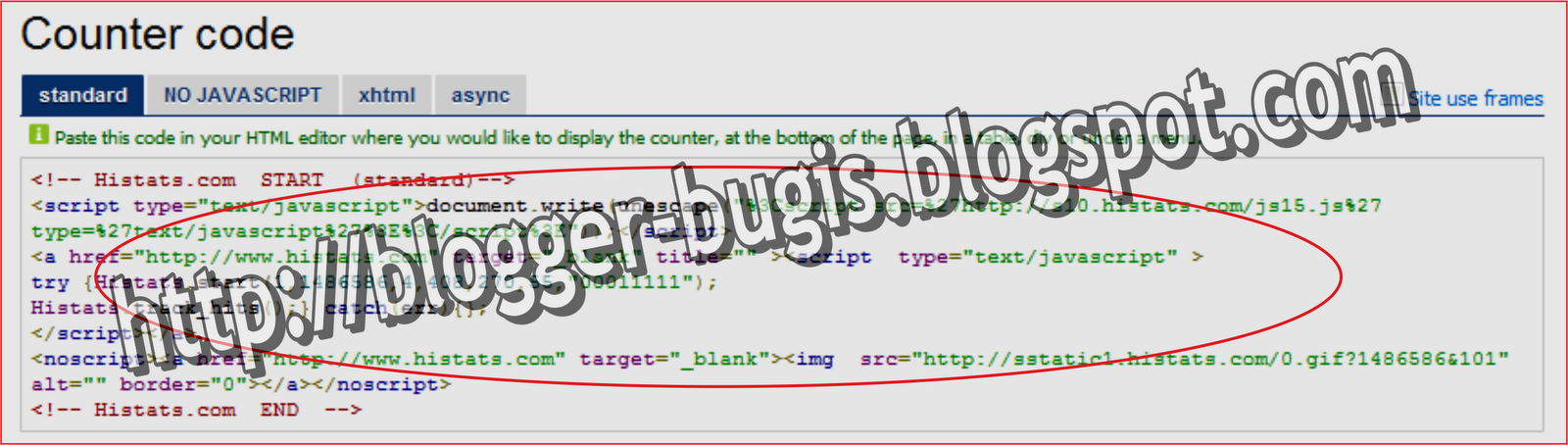 Kode HTML yang anda lihat di bawah tulisan COUNTER CODE adalah kode HISTATS blog anda.