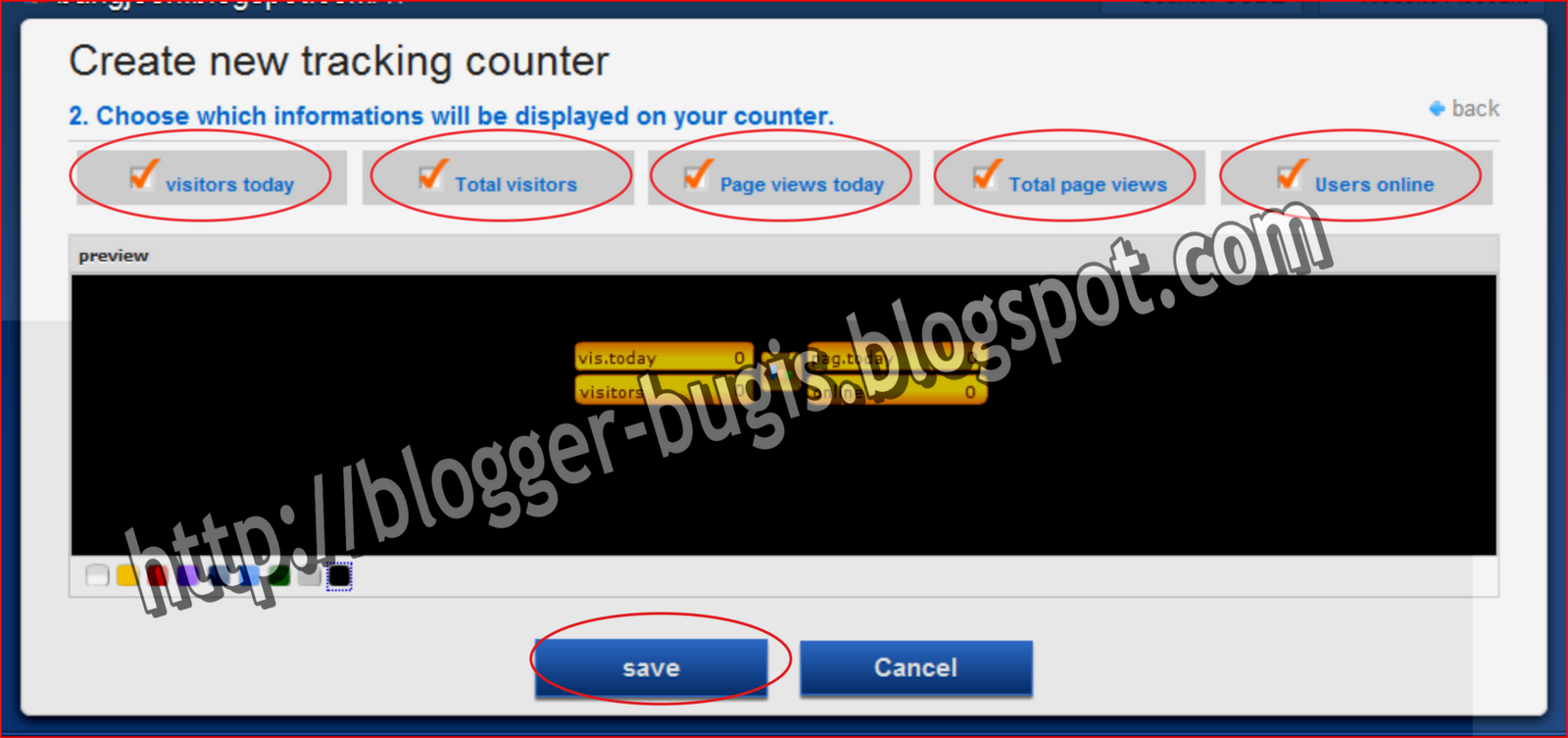 Beri tanda CHECKLIST pada semua kotak kecil yang ada di atas gambar Counter yang anda pilih Lalu Klik SAVE